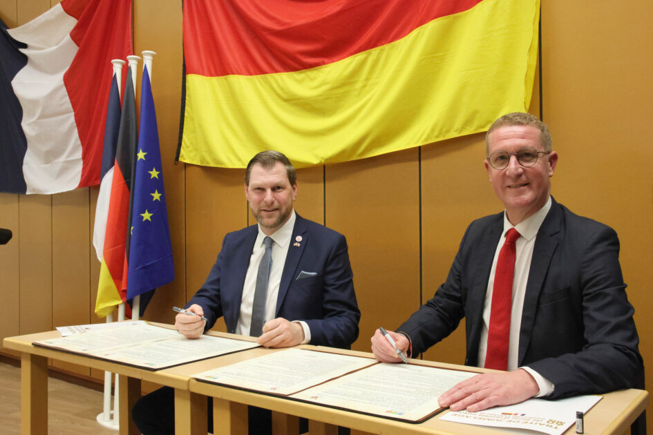 Alban Bruneau et Andre Freymuth ont signé un nouveau traité d’amitié et pris l’engagement solennel « d’encourager et de soutenir les échanges entre leurs concitoyens » et de « promouvoir les valeurs universelles de liberté, de démocratie et d’égalité ». Dans son discours, Alban Bruneau a rendu un hommage appuyé à l’ancien maire allemand Thomas Schmidt. « Pendant 24 ans, Thomas Schmidt a été un acteur particulièrement investi dans notre jumelage, foncièrement convaincu de l’importance de faire vivre les liens d’amitié entre l’Allemagne et la France. Il est aussi un véritable acteur de la paix. »